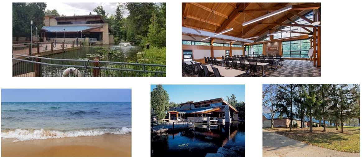 The Family Education Centre at Port Elgin is a beautiful facility: light and airy, filled with art and surrounded by the natural beauty of Port Elgin. The food is plentiful and delicious. Every day there is a full salad bar, hot food and cold food, vegetarian options and yummy desserts. There is a gym and a pub onsite. Each room has an outdoor patio. The facility is on the shore of Lake Huron and it is a 2-minute walk to the beach. Here are some photos of the facility.
