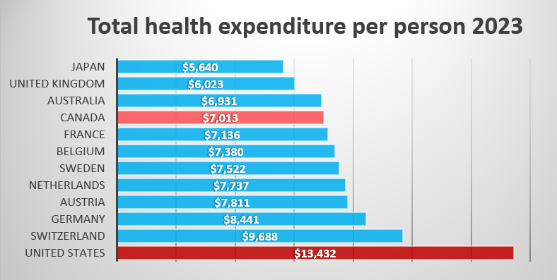 The United States has the most privatized health care in the developed world. Americans pay almost double our costs for care.
