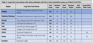 Of the current large Ontario long-term care home outbreaks (as of March 3rd, not counting outbreaks in retirement homes, hospitals, or any other health care setting):