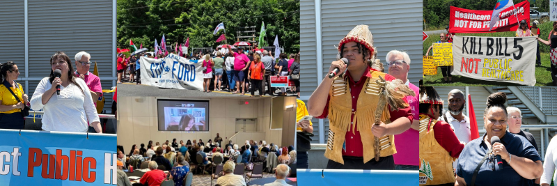 On Tuesday July 22, hundreds of public health care advocates rallied outside where all the provincial/territorial Premiers from across Canada and Prime Minister Carney were meeting. Our message was that we want Canada to do well as we re-forge our national identity in the international crisis created by Donald Trump. However, the proposed $25 billion (yes, that is billions of dollars) in cuts to funding for public services like health care would be devastating to those things that make Canada better and unique from the U.S. Those successful nation building projects from the last century — like public health care and our public services, environmental and health and safety protections, and the first baby steps toward reconciliation with First Nations and Indigenous peoples — cannot be sacrificed in order to shift billions to border militarization and mega projects.