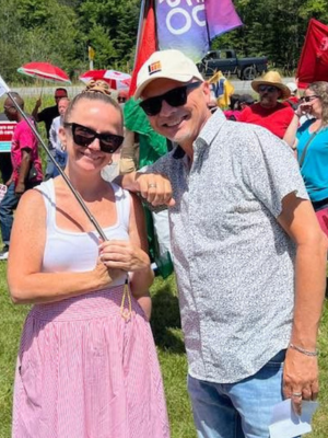 The next day, we formed a car cavalcade that travelled to outside the Deerhurst Resort where all the premiers and Carney were meeting, continued down Highway 60, and culminated in a final very visible rally at the corner of Highway 60 and Highway 11. We stood in support behind First Nations and Indigenous peoples who are fighting to protect their treaty rights, finally achieve access to clean and safe water, and get the health care services their communities need.